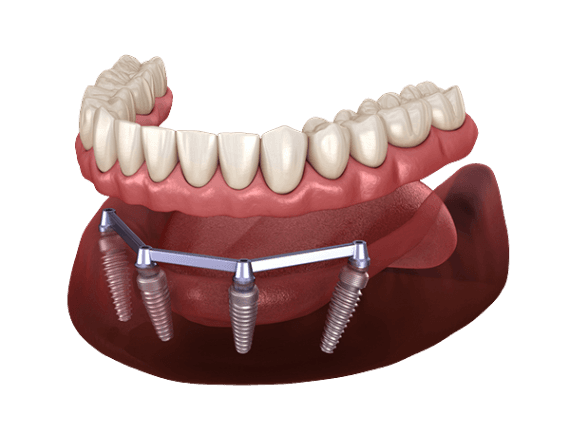 An All-on-X or Full-arched Implant system is the best & permanent solution: